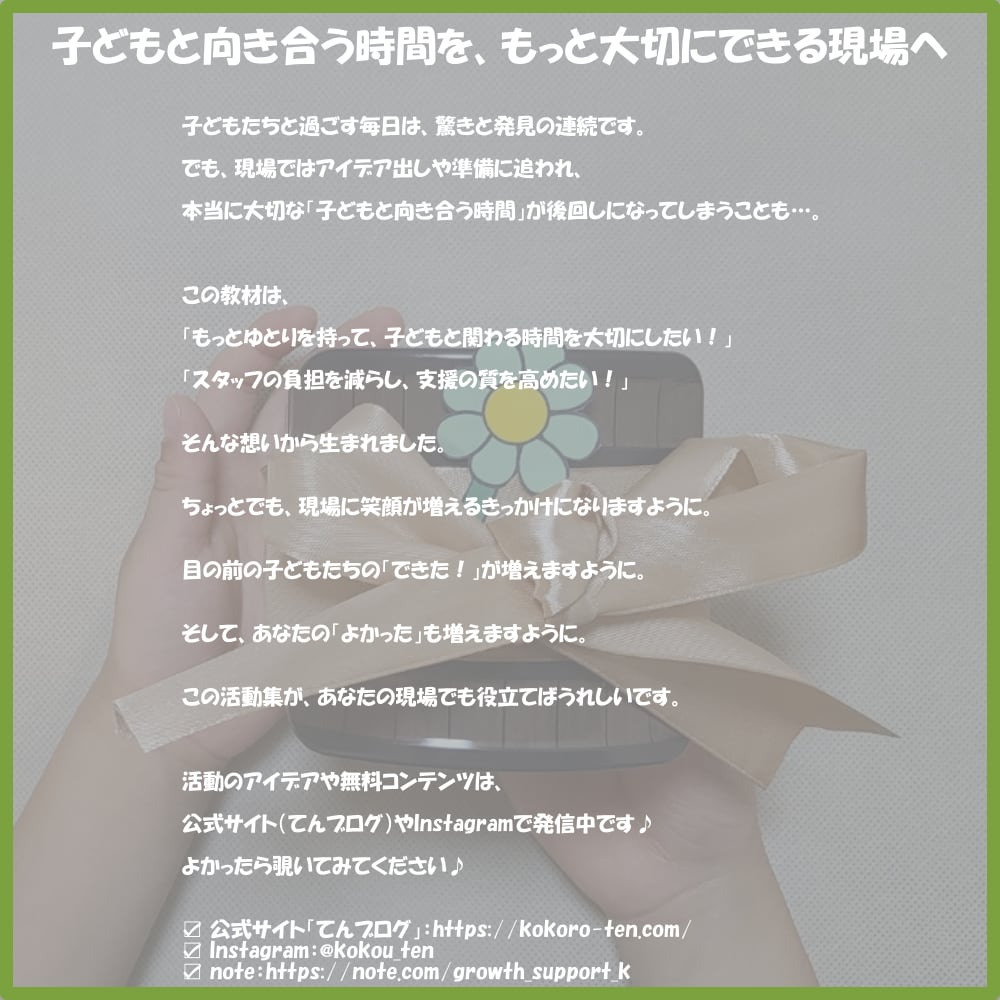 本商品は、放課後等デイサービス・児童発達支援向けに開発した活動プログラム集です。